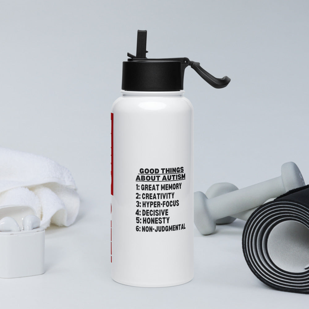ILLTOCHILL Autism awareness Good things about autism list Autistic support gift Stainless steel water bottle with a straw lid.