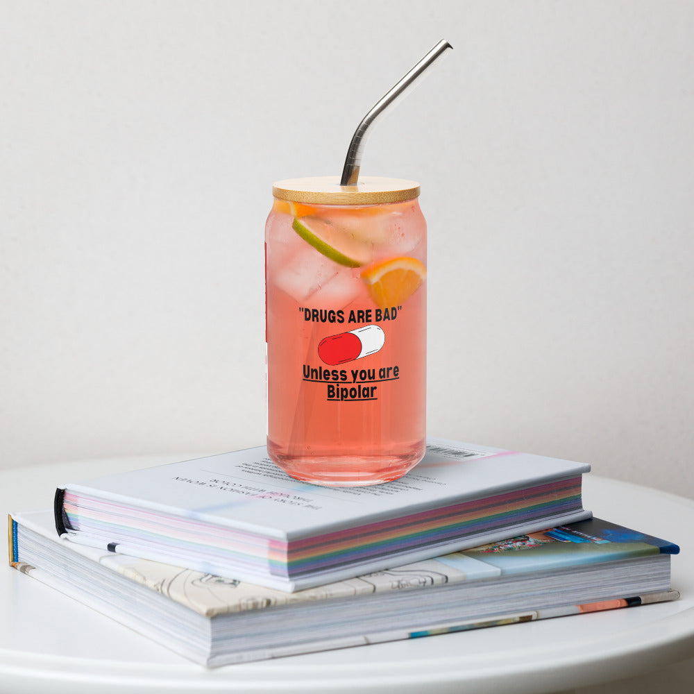 ILLTOCHILL Bipolar disorder Drugs are bad sarcastic bipolar gift Can-Shaped Glass.