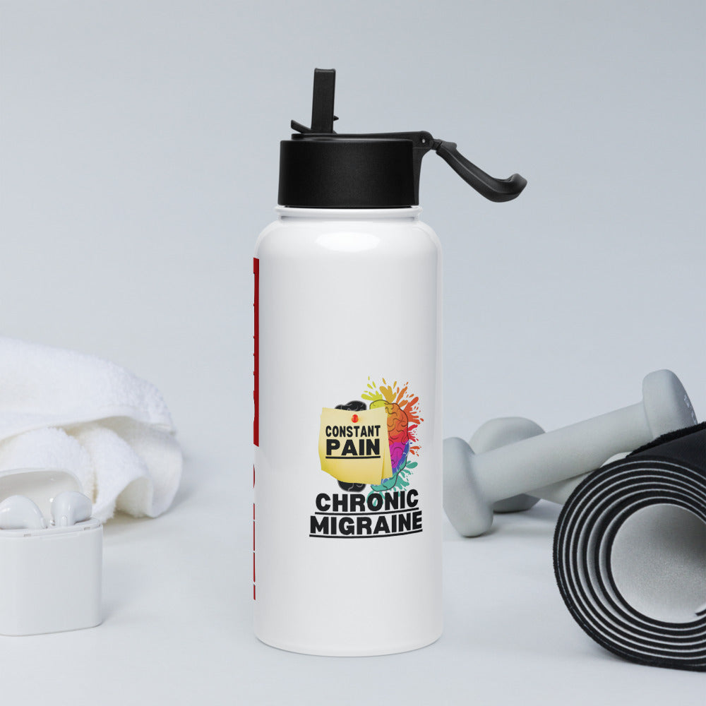 ILLTOCHILL Chronic Migraine Constant Pain migraine support gift Stainless steel water bottle with a straw lid.