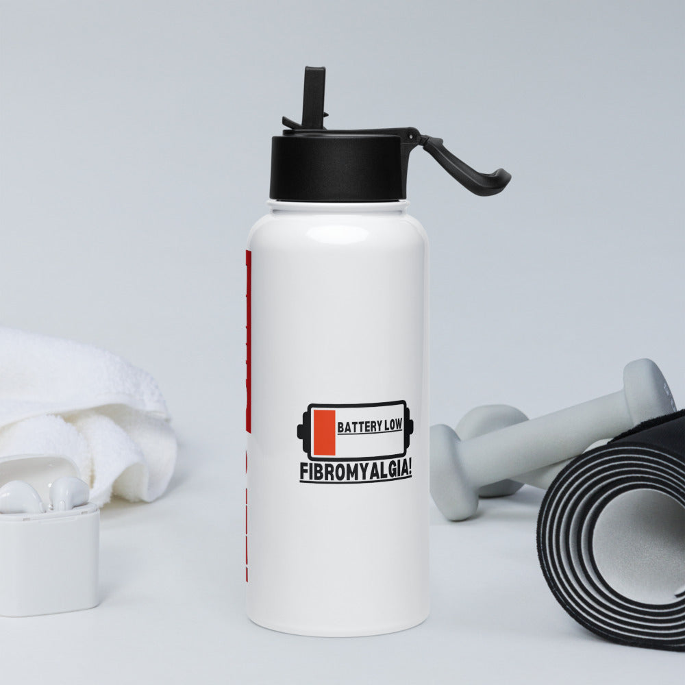 ILLTOCHILL Fibromyalgia awareness Battery Low funny fibro gift Stainless steel water bottle with a straw lid.