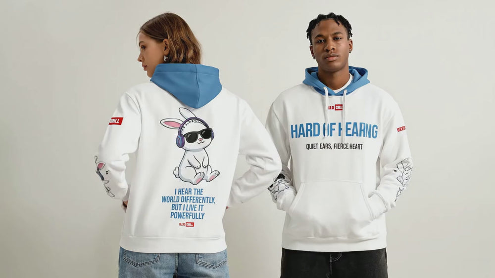 ILLTOCHILL Hard of hearing support gift for hearing impaired Unisex cotton hoodie – Flat Back (White)